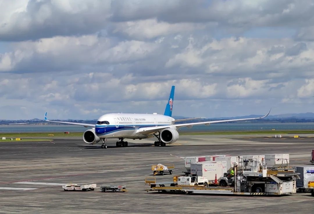 3月3日,搭載中國團(tuán)隊游客的中國南方航空公司班機(jī)抵達(dá)新西蘭奧克蘭國際機(jī)場。新華社發(fā)(程麒麟 攝)