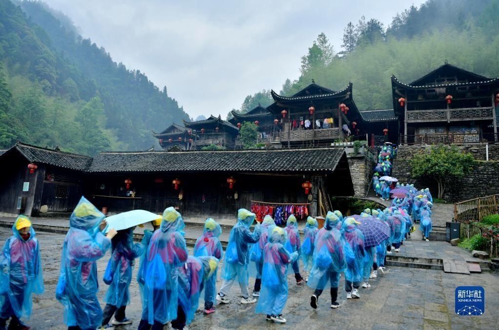 湖北省宣恩縣彭家寨風(fēng)景區(qū)依托保存完好的土家古吊腳樓群落,通過完善研學(xué)基礎(chǔ)設(shè)施,吸引各地學(xué)校組織學(xué)生來此開展土家民俗文化、土家建筑等研學(xué)活動(dòng)。古寨研學(xué)不僅讓學(xué)子們收獲成長(zhǎng),同時(shí)也豐富了山區(qū)旅游的內(nèi)涵,為帶動(dòng)鄉(xiāng)村振興注入了新動(dòng)能。新華社發(fā)(宋文攝)