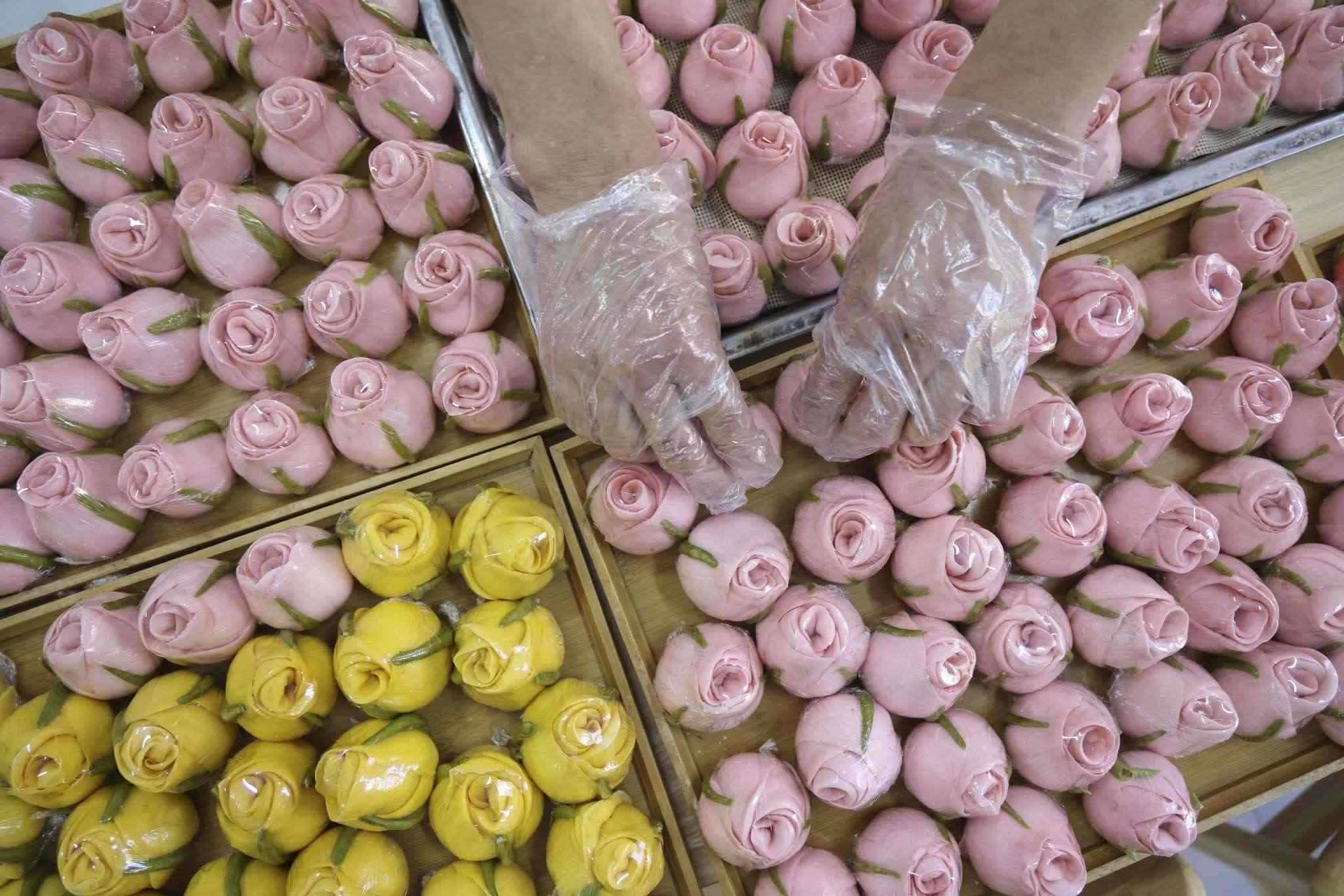 2023年5月12日,山東臨沂,母親節(jié)來臨之際,面點(diǎn)師們制作出色彩鮮艷、軟糯香甜的花饃,受到廣大顧客青睞。視覺中國