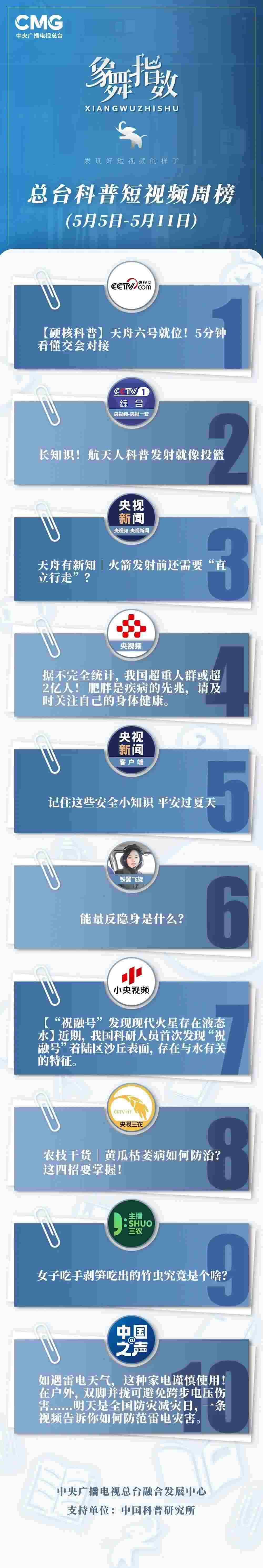 象舞指數(shù)|科普短視頻周榜(5月5日—5月11日)