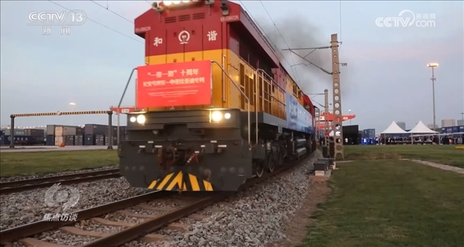 就在上個(gè)月,為紀(jì)念“一帶一路”十周年特別開行的中歐班列——“一帶一路”十周年長安號(hào)西安—中亞專列從西安國際港務(wù)區(qū)發(fā)車。2013年11月,首列中歐班列長安號(hào)正是由這里出發(fā),開往哈薩克斯坦。從這里啟程的長安號(hào),從最初的年開行46列發(fā)展到去年的4600多列,十年增長了100倍。十年來,長安號(hào)累計(jì)開行超過1.6萬列。其中,中亞五國開行量達(dá)到4250列,為促進(jìn)中國同中亞互聯(lián)互通與經(jīng)貿(mào)合作發(fā)揮了重要作用。