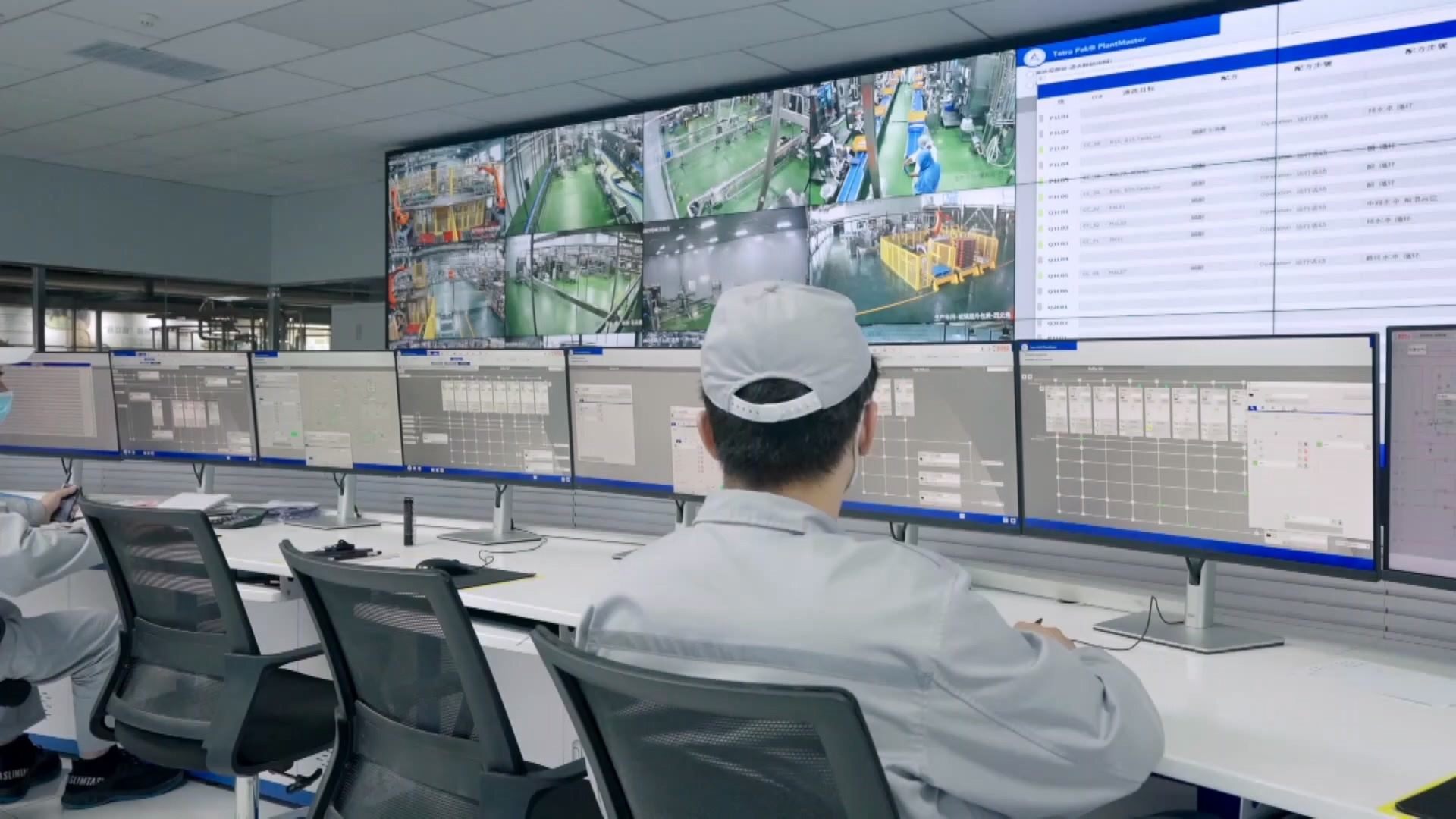總臺記者 張智:智能生活,無處不在,哪怕只是一袋小小的牛奶。在我所在的這間智能工廠,19條智能生產(chǎn)線正在高速運轉,百余種乳制品被生產(chǎn)出來,送往千家萬戶。從鮮奶、各種原輔料,到成為一箱箱包裝完備的牛奶,每一道生產(chǎn)流程都被數(shù)字化,整個過程不超過24小時。通過設備上的傳感器,溫度、壓力、流量等信息傳輸?shù)街腔鄞竽X。工人們在控制中心就可實現(xiàn)全流程監(jiān)管。智能化、數(shù)字化的生產(chǎn)方式,讓乳業(yè)制造向“智造”飛躍。