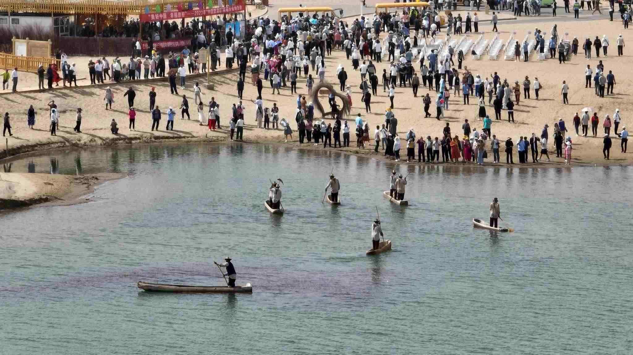 2023年5月19日是第13個(gè)“中國旅游日”。隨著當(dāng)天啟動(dòng)的新疆維吾爾自治區(qū)2023年“5·19中國旅游日”各項(xiàng)旅游促銷活動(dòng),尉犁縣羅布人村寨一片歡騰,迎來了入夏首個(gè)旅游高峰。視覺中國