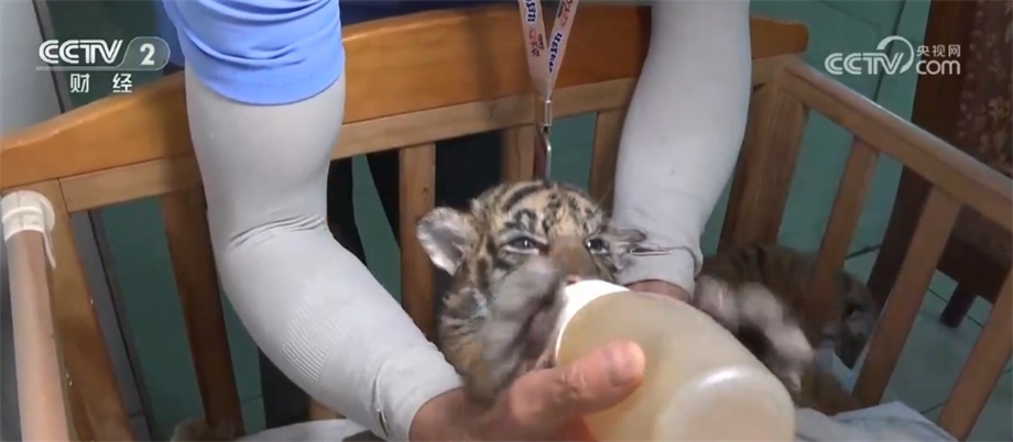 據(jù)了解,這5只虎寶寶兩只雄性三只雌性。由于虎媽媽年齡偏大、體質(zhì)偏弱,加之習(xí)性暴躁,在產(chǎn)下5只虎寶寶后不久便不再照顧它們。5只虎寶寶生命體征極其脆弱,隨時可能夭折,為此,飼養(yǎng)員采取了人工哺乳方式進行喂養(yǎng)。