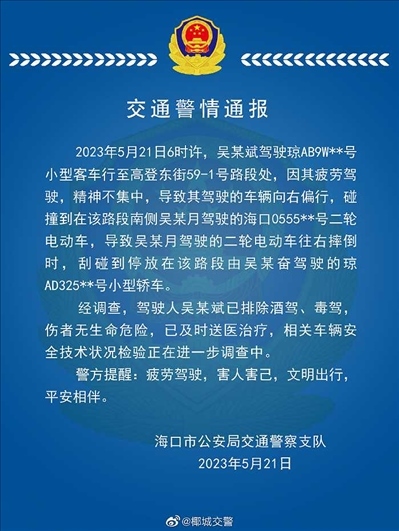 ·??诮痪▓蟆耙卉囕v沖上綠化帶撞倒環(huán)衛(wèi)工人”:司機疲勞駕駛,傷者無生命危險。