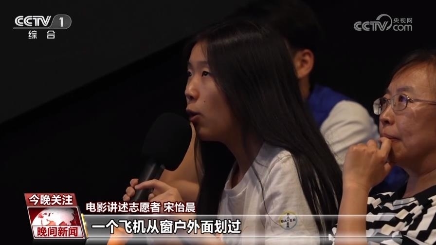 電影講述志愿者 宋怡晨:講述者就是一個(gè)旁白的工作,在臺(tái)詞的空隙、轉(zhuǎn)場(chǎng)的空隙把所有那些在電影院里只能通過(guò)眼睛看得到的信息,以聲音的形式來(lái)展現(xiàn)給盲人觀眾。你說(shuō)一個(gè)杯子,誰(shuí)都知道杯子長(zhǎng)什么樣,但你說(shuō)一個(gè)太空的儀器,沒(méi)有人知道它長(zhǎng)什么樣子,他描繪不出來(lái)那個(gè)畫面,所以這個(gè)信息在他們這是斷層的。
