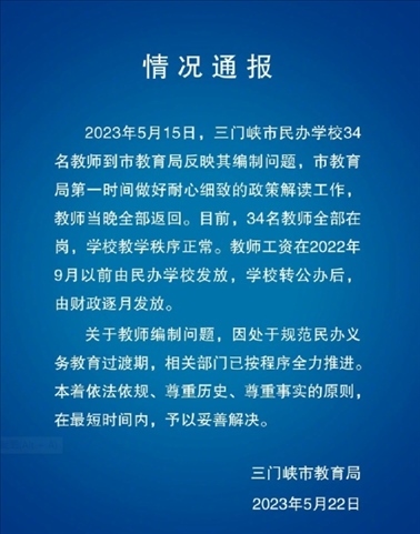 ·三門峽通報(bào)“34名教師反映編制4年未解決”:目前全部在崗,將妥善解決問(wèn)題。