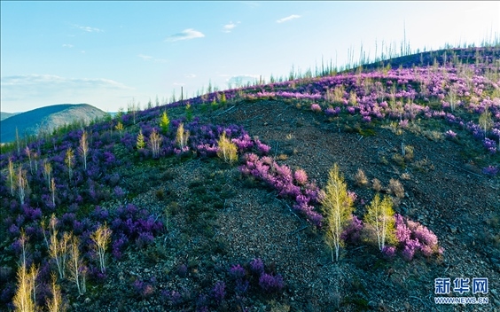 5月22日,內(nèi)蒙古大興安嶺北部“杜鵑花谷”杜鵑花綻放。新華網(wǎng)發(fā)(李明 攝)