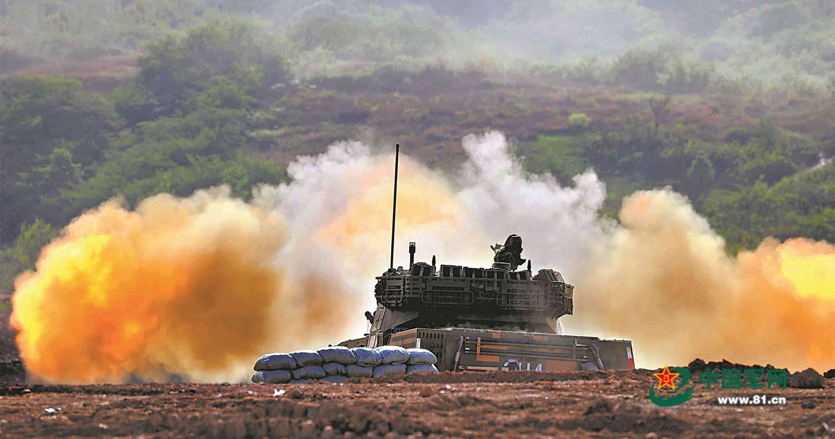 戰(zhàn)機稍縱即逝,偵察隊員立即向指揮所報告情況并呼叫炮火支援。各戰(zhàn)斗小組快速分發(fā)彈藥,戰(zhàn)車迅即駛向預備陣地。“目標鎖定,射擊!”剎那間,一發(fā)發(fā)炮彈呼嘯著撲向“敵”陣地。