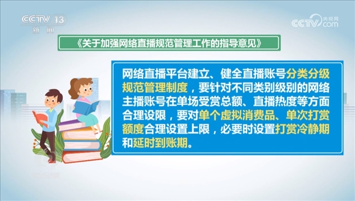 根據(jù)行業(yè)管理的要求,2021年我國《關于加強網(wǎng)絡直播規(guī)范管理工作的指導意見》中就提出,網(wǎng)絡直播平臺建立、健全直播賬號分類分級規(guī)范管理制度,要針對不同類別級別的網(wǎng)絡主播賬號在單場受賞總額、直播熱度等方面合理設限,要對單個虛擬消費品、單次打賞額度合理設置上限,必要時設置打賞冷靜期和延時到賬期。時隔兩年多的時間,這些要求一些平臺并沒有落實。
