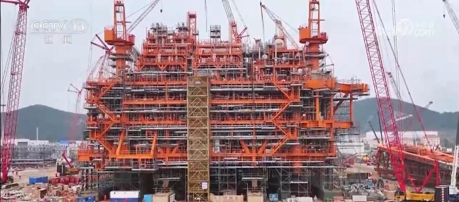 中國海油天津分公司工程建設中心項目負責人 陳濤:中心平臺設計油氣年處理能力超500萬噸,平臺在陸地完成拖拉裝船、固定、檢驗后,將于7月運往海上開展安裝、連接、調試工作,預計2023年底投入試生產。