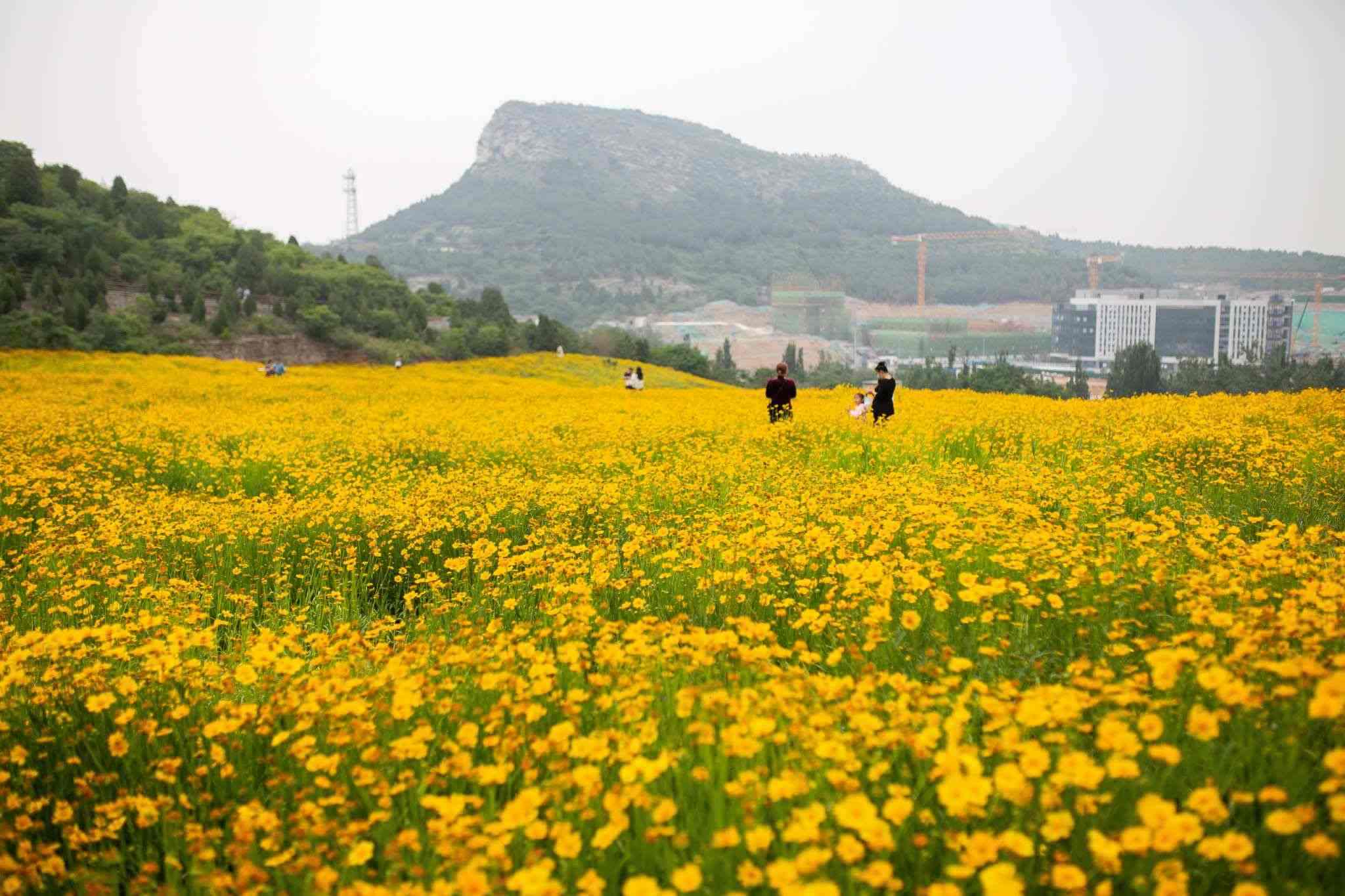 2023年5月26日,濟(jì)南蚰蜒山,山谷大片的金雞菊盛開,宛如一片黃色的花海。視覺中國