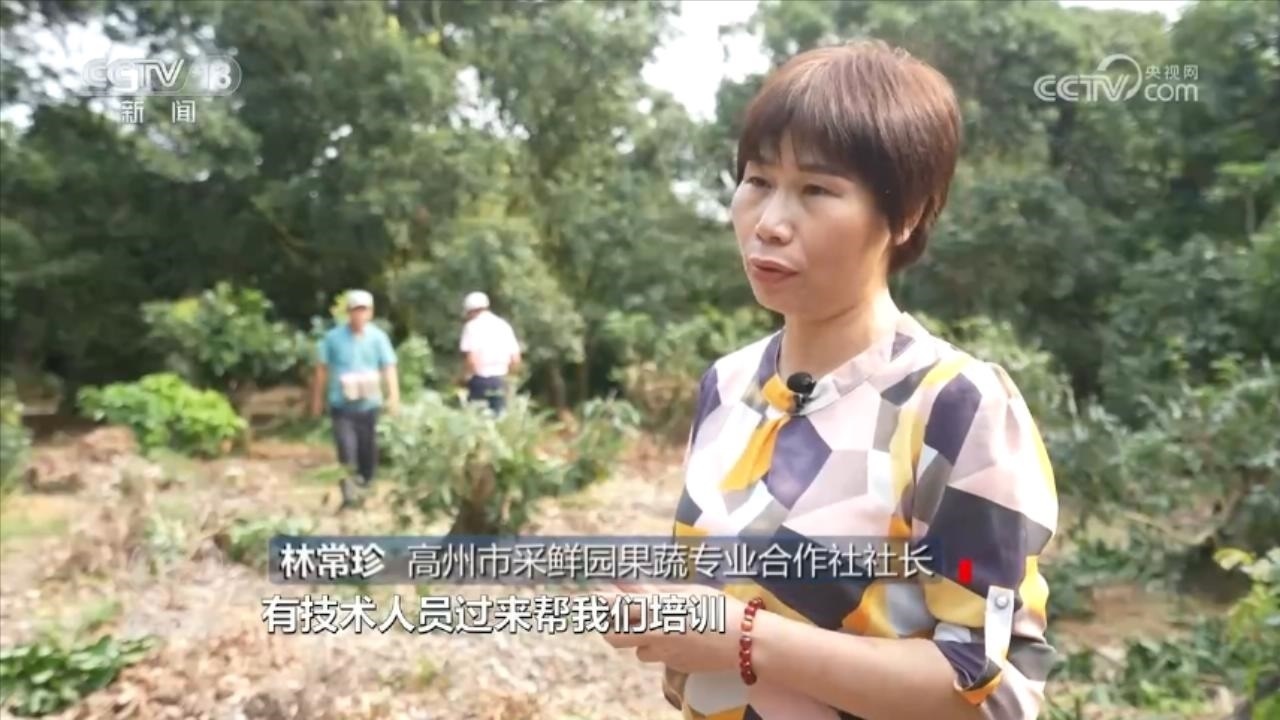 高州市采鮮園果蔬專業(yè)合作社社長林常珍:“有技術人員過來培訓,我們老百姓很高興。我們那些師傅現(xiàn)在學的技術都好成熟了?!?/p>