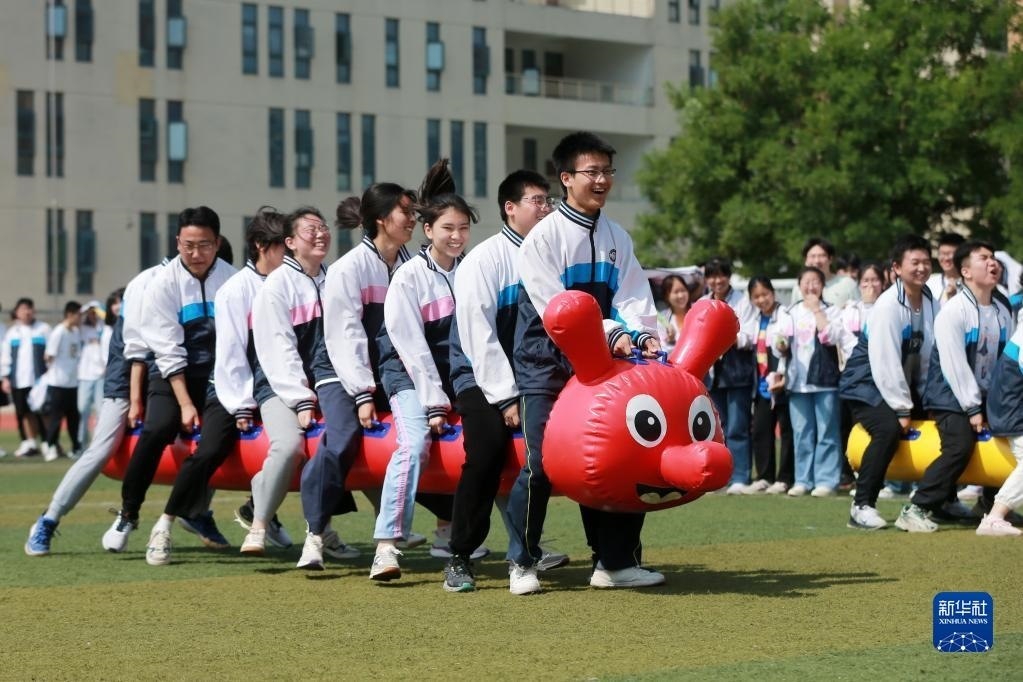 高考臨近,安徽省淮北市第十二中學(xué)組織高三年級學(xué)生開展豐富多彩的集體減壓活動(dòng),讓學(xué)生們在趣味游戲中釋放壓力,以輕松、樂觀、自信的心態(tài)迎接高考。新華社發(fā)(萬善朝 攝)
