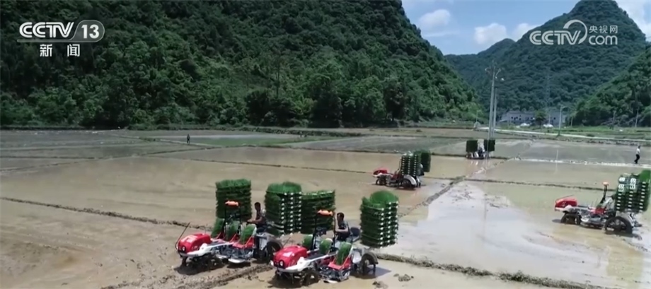我們再到貴州省黔南州長順縣付家院村去看看。稻田里,多臺(tái)插秧機(jī)在農(nóng)機(jī)手的操作下,將一株株秧苗從苗盤整齊地栽種入田。今年,長順縣計(jì)劃種植水稻12萬畝,目前超過6成的水田完成了插秧,預(yù)計(jì)6月中旬能全部結(jié)束。