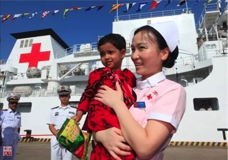 2013年,“和平方舟”號(hào)醫(yī)院船再次來(lái)到孟加拉國(guó)。上萬(wàn)民眾自發(fā)涌向中國(guó)醫(yī)院船,最高單日門診1700余人次。3歲的阿里法·沁健康么?中國(guó)軍醫(yī)牽掛著她。她家住在偏僻農(nóng)村,中國(guó)軍醫(yī)設(shè)法找到了她,邀請(qǐng)她登上“和平方舟”號(hào)醫(yī)院船體檢。