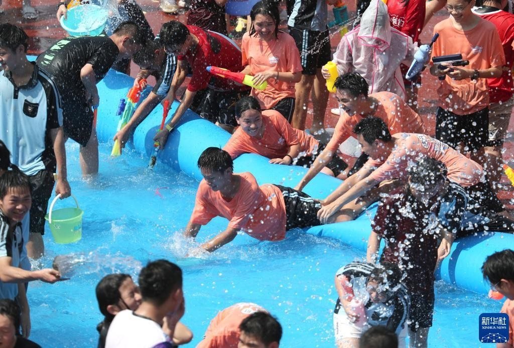 6月2日,學生們享受潑水活動帶來的快樂。