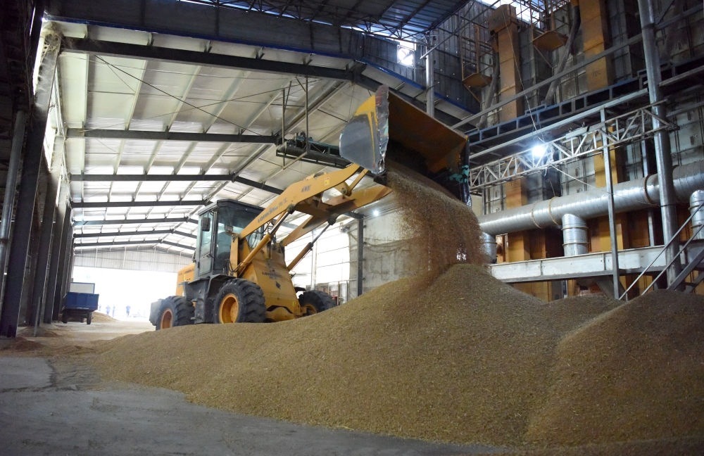 5月30日,在河南省駐馬店市正陽縣大林鎮(zhèn)一家烘干加工合作社,工作人員駕駛車輛將濕麥推入烘干機(jī)入料口。新華社記者 郝源 攝