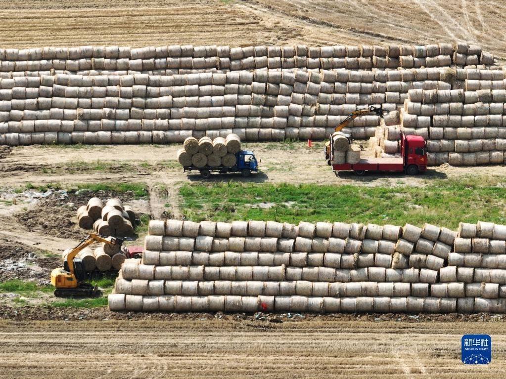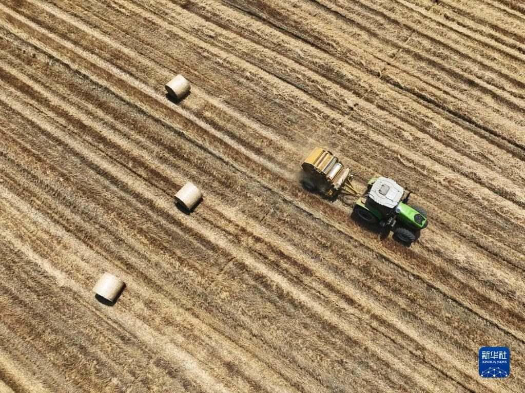麥?zhǔn)諘r節(jié),江蘇省宿遷市泗洪縣依托小麥秸稈的收、儲、運(yùn)、用綜合利用網(wǎng)絡(luò),將小麥秸稈用于發(fā)電、造紙、制作飼草等用途,綜合利用率達(dá)九成以上,不但解決了秸稈拋棄田間、溝河造成的污染問題,還有效增加了農(nóng)民收入。   新華社發(fā)(許昌亮 攝)