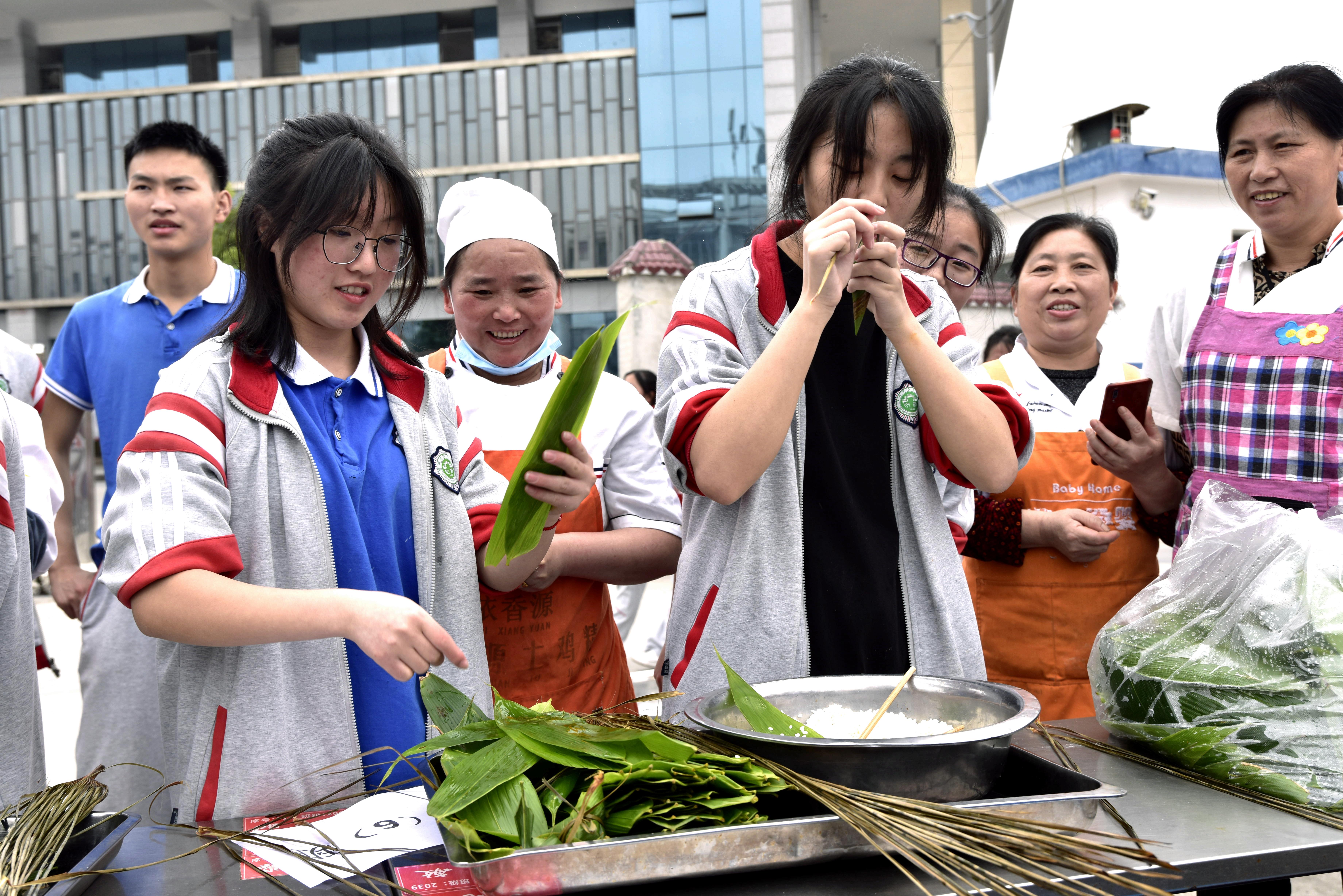 近日拍攝的貴州省務(wù)川中學(xué)高三學(xué)生在參加“美食減壓”迎高考活動(dòng)。