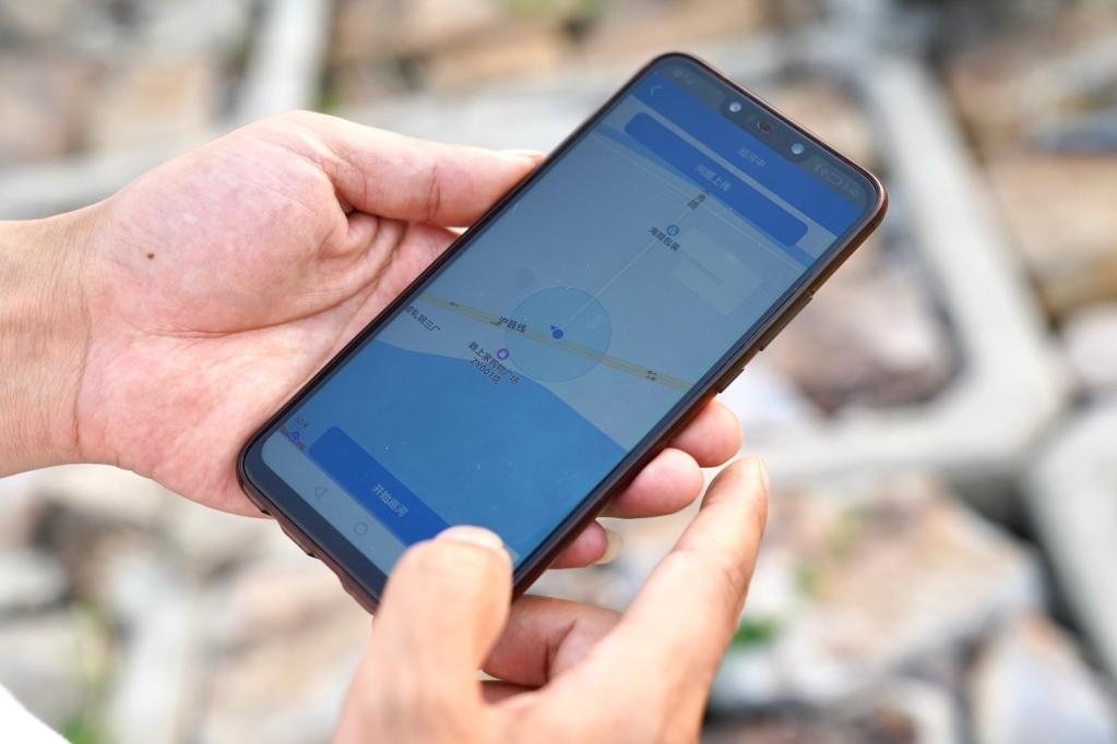 圖為6月2日,巡河中的沈曉華向記者展示河長制平臺。新華社記者林凱 攝