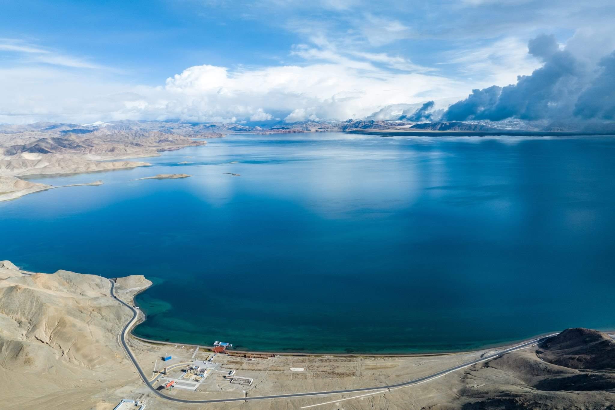 西藏阿里:班公湖上空白云飄飄