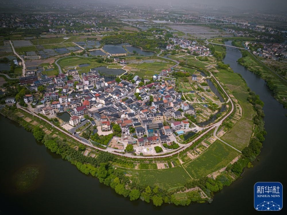 空中俯瞰浙江湖州市長興縣煤山鎮(zhèn)新川村(5月24日攝,無人機(jī)照片)。該村先后獲評全國民主法治示范村、浙江省全面小康建設(shè)示范村、浙江省衛(wèi)生村、浙江省美麗鄉(xiāng)村特色精品村、浙江省AAA級景區(qū)村莊等。新華社記者 徐昱 攝