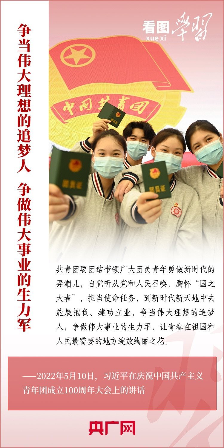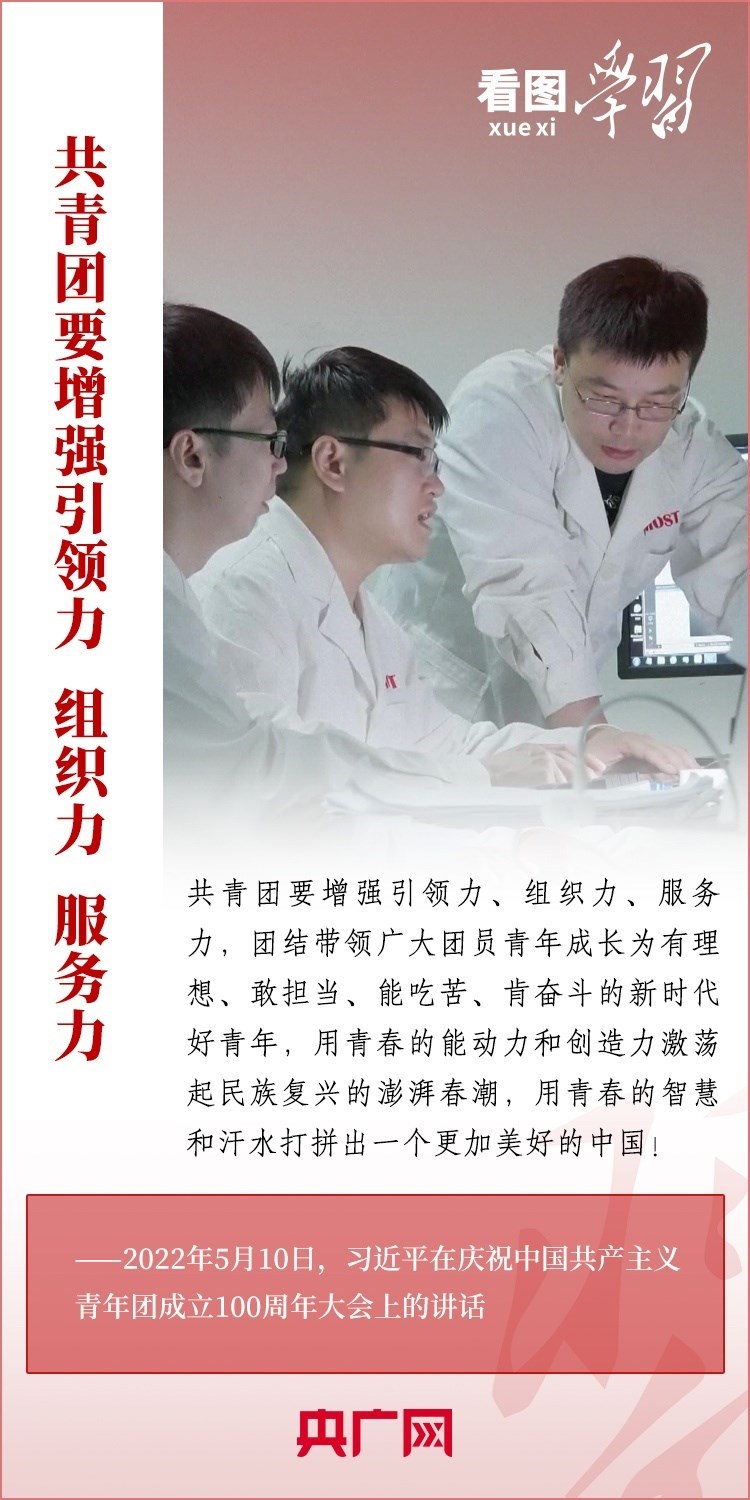 中國(guó)共青團(tuán)是中國(guó)青年運(yùn)動(dòng)的先鋒隊(duì),是黨的忠實(shí)助手和可靠后備軍。習(xí)近平總書(shū)記高度重視共青團(tuán)工作,強(qiáng)調(diào)共青團(tuán)要增強(qiáng)引領(lǐng)力、組織力、服務(wù)力,團(tuán)結(jié)帶領(lǐng)廣大團(tuán)員青年成長(zhǎng)為有理想、敢擔(dān)當(dāng)、能吃苦、肯奮斗的新時(shí)代好青年,用青春的能動(dòng)力和創(chuàng)造力激蕩起民族復(fù)興的澎湃春潮,用青春的智慧和汗水打拼出一個(gè)更加美好的中國(guó)!