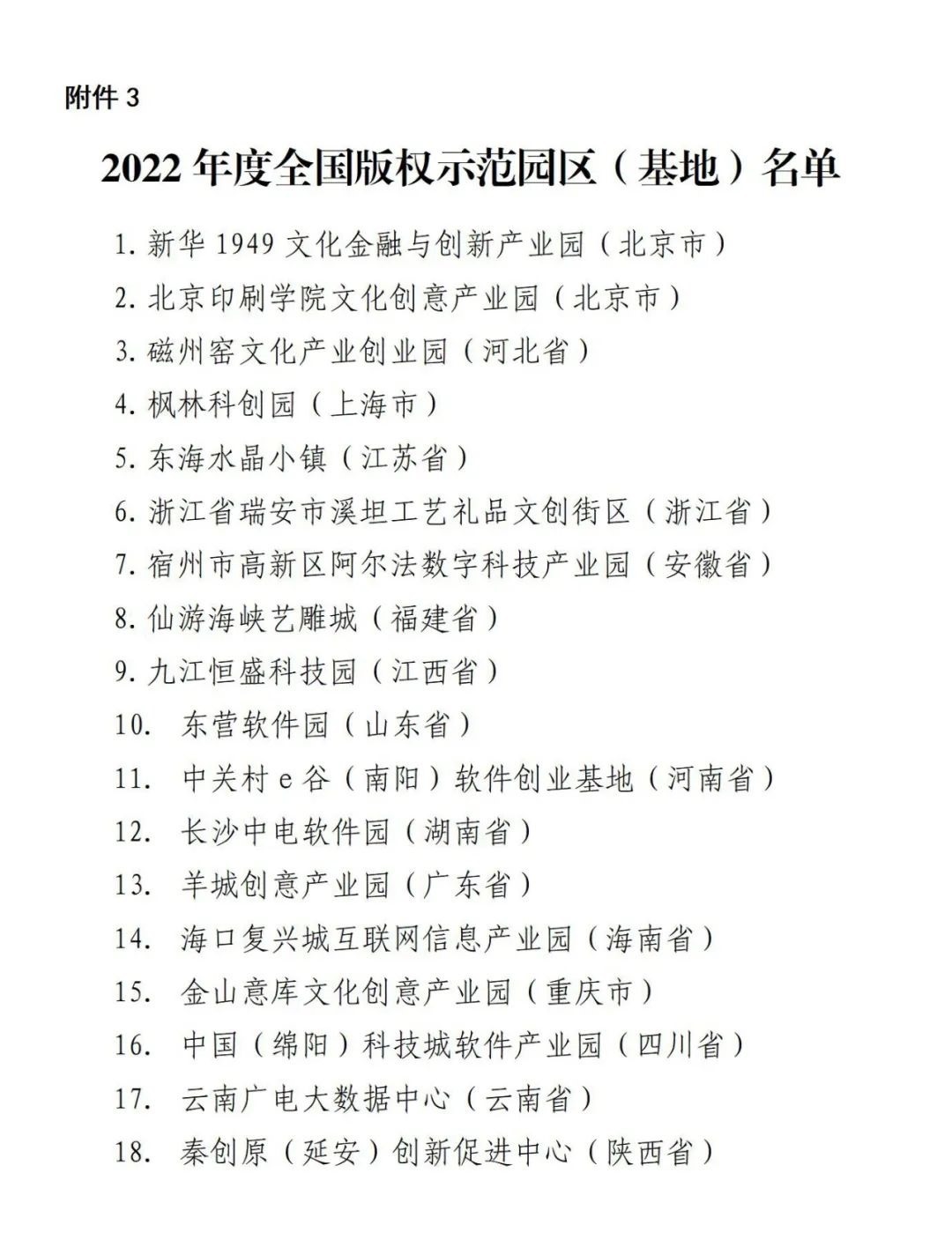 3.2022年度全國版權示范園區(qū)(基地)名單