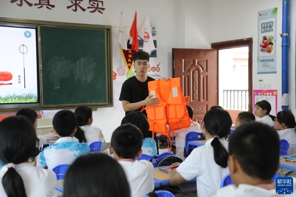 暑期臨近,江西省南昌市各縣區(qū)中小學(xué)校紛紛開展暑期安全教育主題活動,通過防溺水安全主題班會、安全知識培訓(xùn)、自救技能培訓(xùn)等方式提升學(xué)生的安全意識與防范危險(xiǎn)能力,讓孩子們度過一個(gè)安全快樂的假期。新華社記者 彭昭之 攝