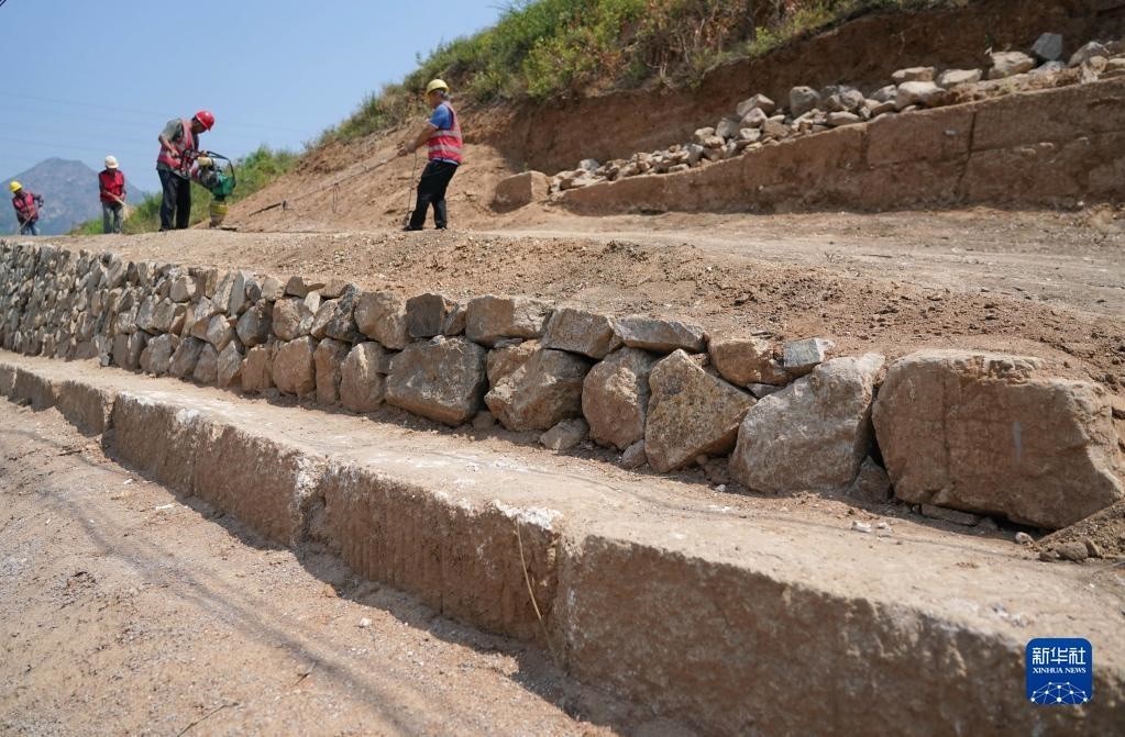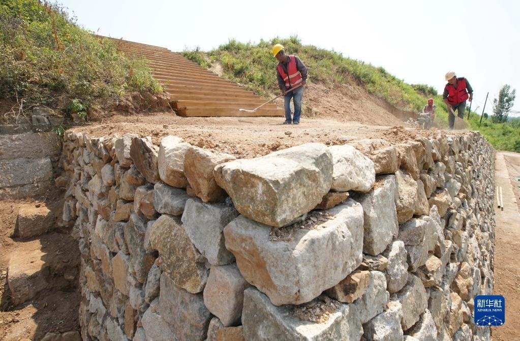 近日,河北省秦皇島市山海關(guān)區(qū)山海關(guān)長城保護(hù)展示工程——腰鋪9號敵臺和51號墻臺馬道保護(hù)修繕工程施工穩(wěn)步推進(jìn)。據(jù)介紹,腰鋪9號敵臺和51號墻臺馬道是山海關(guān)長城軍事防御體系中重要的附屬設(shè)施。修繕工程預(yù)計7月底完工。新華社記者 楊世堯 攝