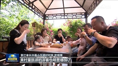 浙江省長興縣小沉瀆村村民 欽明輝:這些年我們的河道肉眼可見地變清了,來村里旅游的游客也明顯增加了。