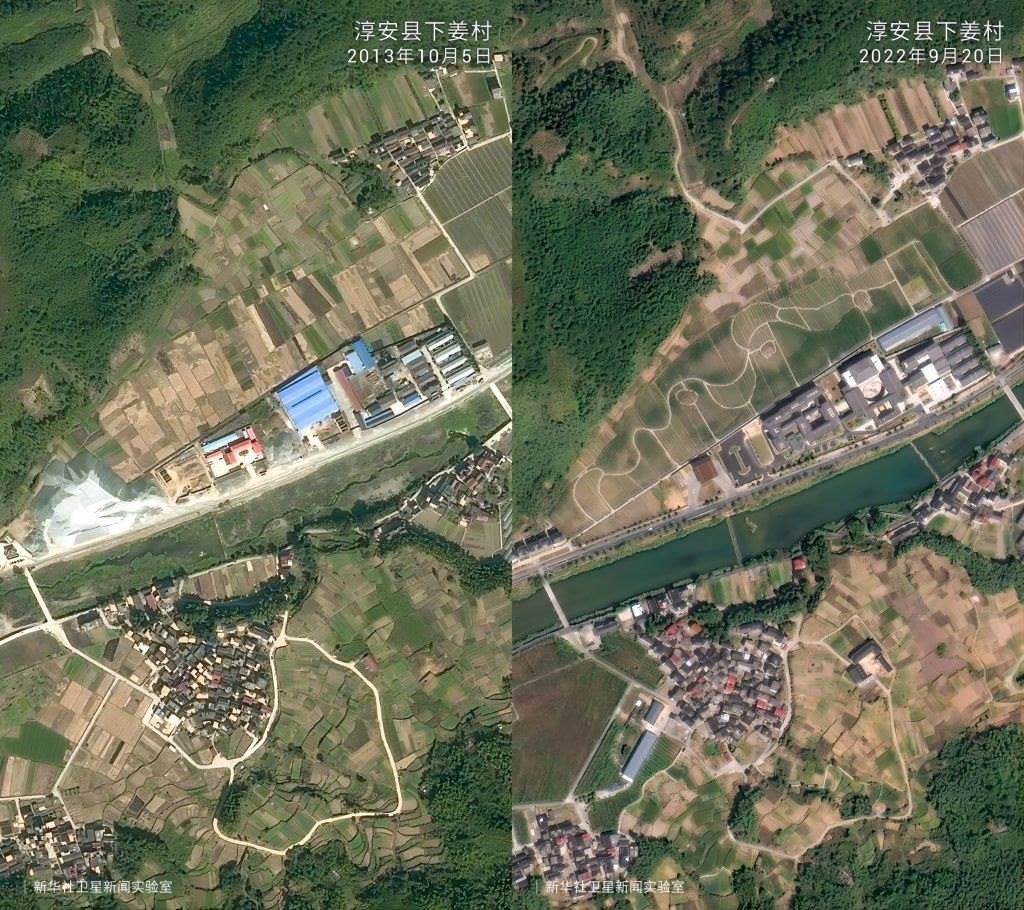 一組組衛(wèi)星對(duì)比圖見證了歲月流轉(zhuǎn)中的鄉(xiāng)村巨變。放眼浙江廣闊大地,這場(chǎng)跨越20年的美麗接力正煥發(fā)新的生機(jī)。