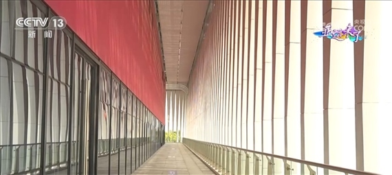 總臺(tái)央視記者 任梅梅:現(xiàn)在我們就來到了手球館室外的二層平臺(tái),進(jìn)入了“水?!钡膬?nèi)部,這一條條垂著的“水?!逼鋵?shí)不僅僅是裝飾品,更有著實(shí)際的作用,它們就像百葉窗一樣,能夠起到隔熱的效果,另外還可以減少眩光,提高室內(nèi)視覺的舒適度。