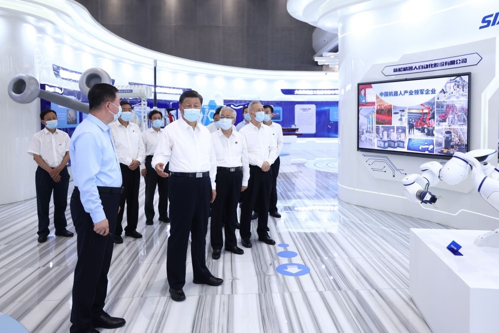 2022年8月17日下午,習近平在遼寧沈陽新松機器人自動化股份有限公司展廳,了解公司生產(chǎn)經(jīng)營、自主創(chuàng)新情況。