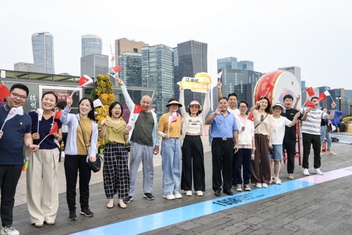 9月20日上午,杭州亞運會火炬?zhèn)鬟f杭州站起跑儀式在杭州城市陽臺舉行。