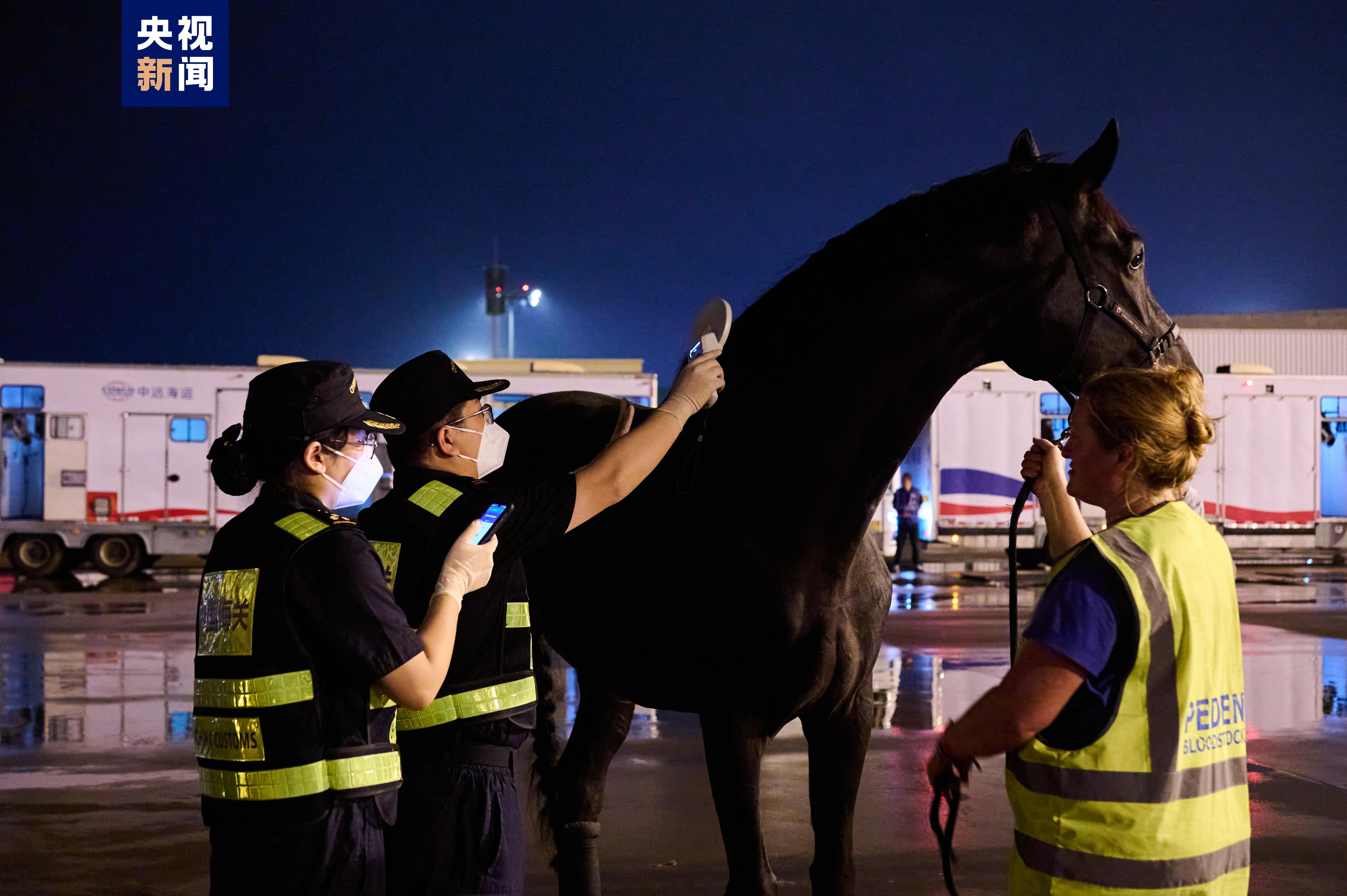 杭州亞運會賽事總指揮部馬術(shù)項目管理指揮中心相關(guān)負責人表示,“這些參賽馬經(jīng)過了十幾個小時的長途飛行,狀態(tài)比較疲憊,我們要在精準查驗、確保安全的同時,盡可能縮短通關(guān)轉(zhuǎn)運時間,保障馬匹福利?!睘榇耍贾菔捝絿H機場停機坪提前用圍擋設(shè)置了專門的馬匹裝卸轉(zhuǎn)運場地,完成場地消殺,專用運輸車輛和設(shè)備提前進入。海關(guān)就近設(shè)置隨機人員通關(guān)專用通道,縮短人、馬分離時間,保障隨機人員與參賽馬同步通關(guān),并創(chuàng)新開發(fā)參賽馬芯片識別程序,運用“賽馬檢疫在線”智慧監(jiān)管系統(tǒng)大幅提升參賽馬身份驗核效率。同時,通過優(yōu)化流程、協(xié)同運行,確保馬匹裝備、飼料、獸藥、馬醫(yī)療器械等隨機物資快速通關(guān)。參賽馬采用“快進快出”的方式,在同等動物衛(wèi)生條件下參賽,比賽結(jié)束后立即出境,實現(xiàn)賽馬“順利入境、健康參賽、安全返回”。