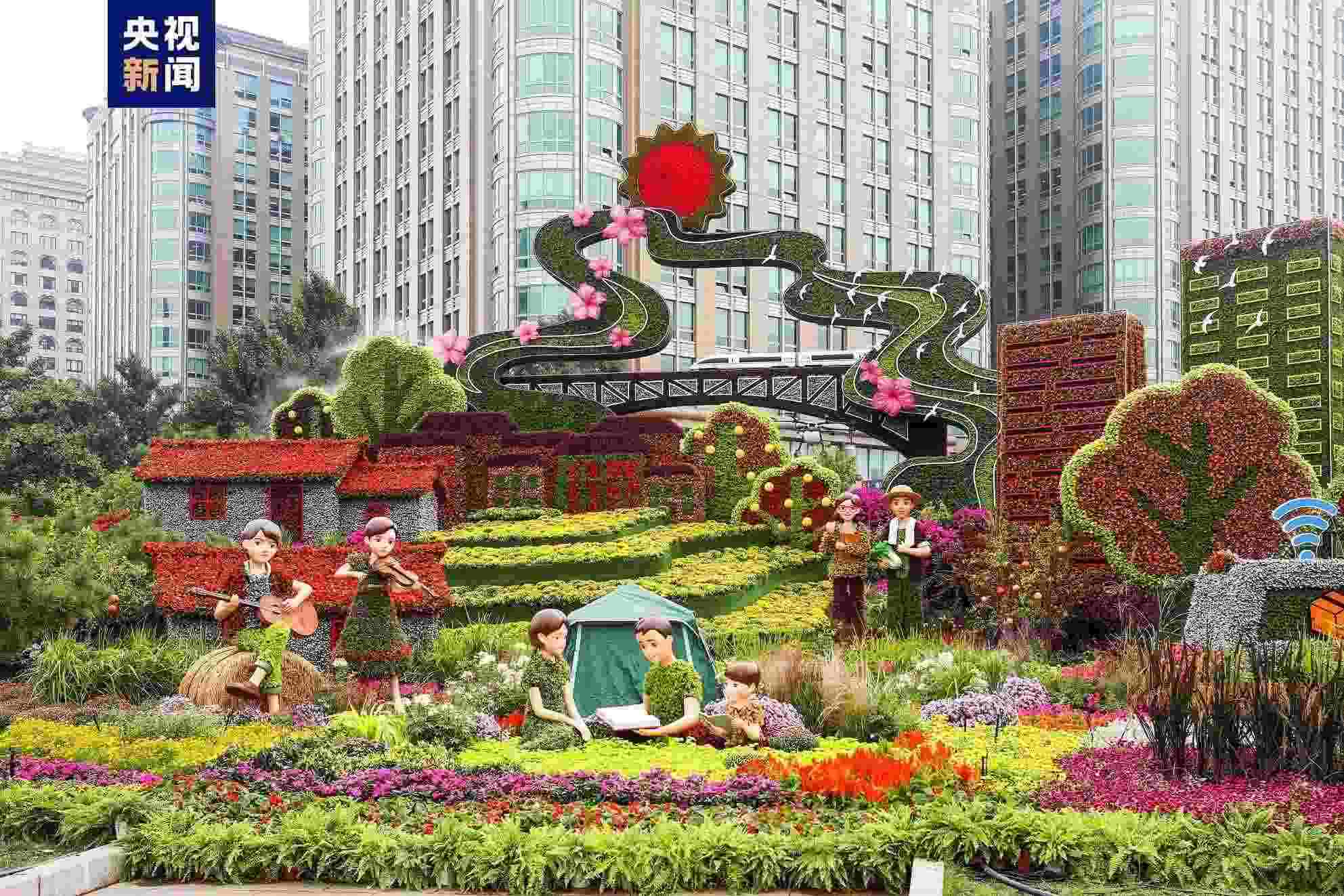 “祝福祖國”巨型花籃亮相 天安門廣場和長安街沿線國慶花卉布置完工
