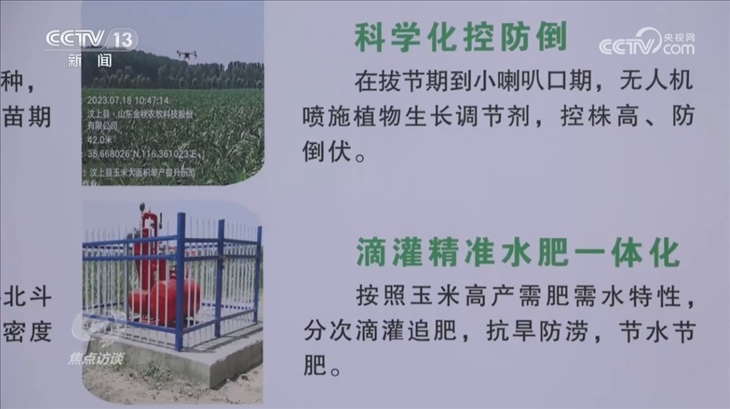 郭波波所在的汶上縣作為國(guó)家玉米單產(chǎn)提升整建制推進(jìn)縣,有5萬(wàn)畝玉米單產(chǎn)提升示范區(qū),今年第一次試驗(yàn)推廣密植滴灌高產(chǎn)精準(zhǔn)調(diào)控技術(shù)。種植戶們擔(dān)心密植后的玉米出現(xiàn)營(yíng)養(yǎng)不良和倒伏,這項(xiàng)技術(shù)就是要解決這個(gè)痛點(diǎn)。通過鋪在地上的滴管,對(duì)玉米進(jìn)行水肥一體化滴灌,讓玉米“少食多餐、食量均勻”,既節(jié)肥節(jié)水,又能補(bǔ)充足夠的營(yíng)養(yǎng),從而增加玉米的抗倒伏能力。