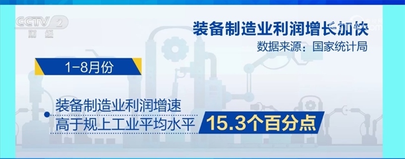 特別是裝備制造業(yè)利潤增長加快。1—8月份,裝備制造業(yè)利潤增速高于規(guī)上工業(yè)平均水平15.3個百分點。其中,電氣機械、鐵路船舶航空航天運輸設備行業(yè)利潤保持較高增速。
