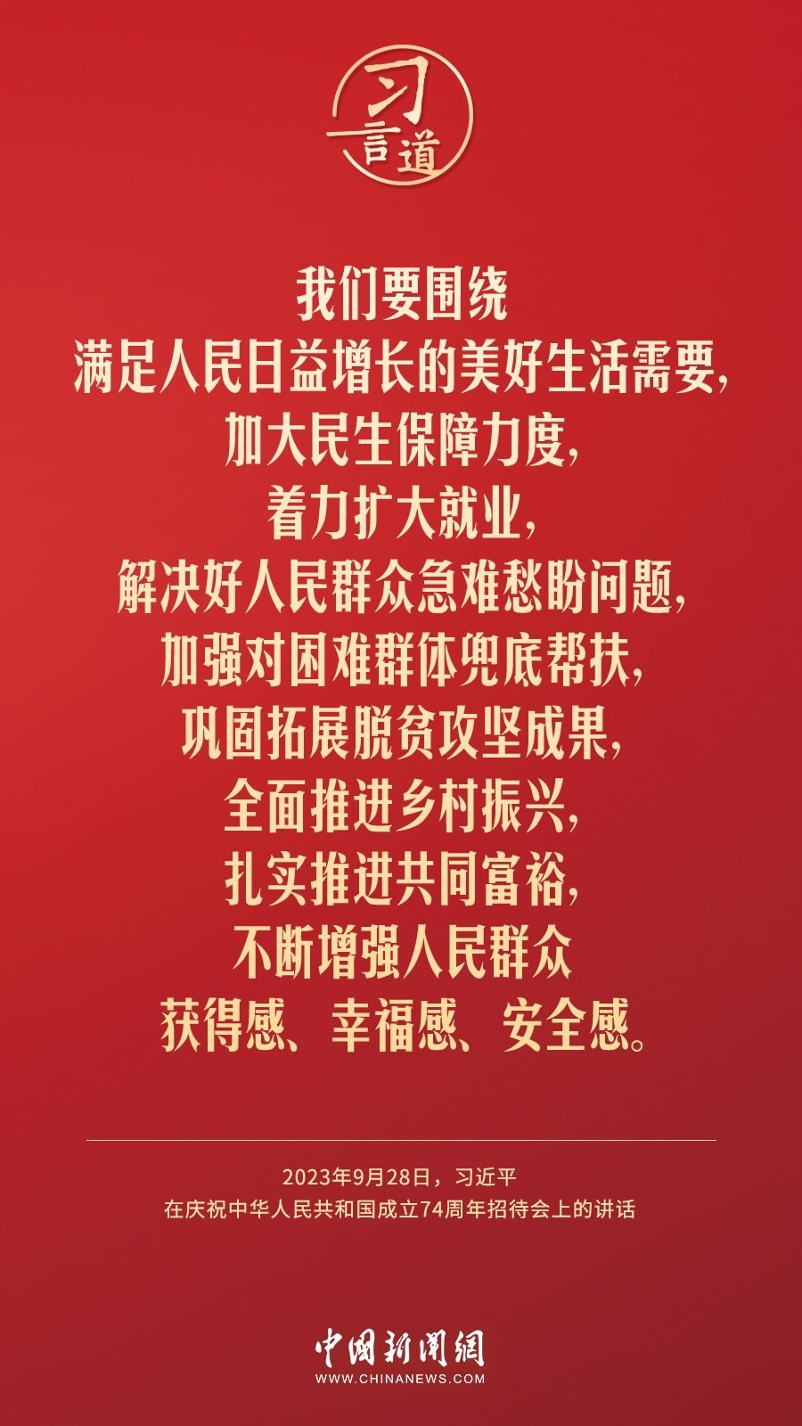 慶祝中華人民共和國(guó)成立74周年招待會(huì)28日晚在人民大會(huì)堂舉行。中共中央總書(shū)記、國(guó)家主席、中央軍委主席習(xí)近平出席招待會(huì)并發(fā)表重要講話(huà)。他強(qiáng)調(diào)——