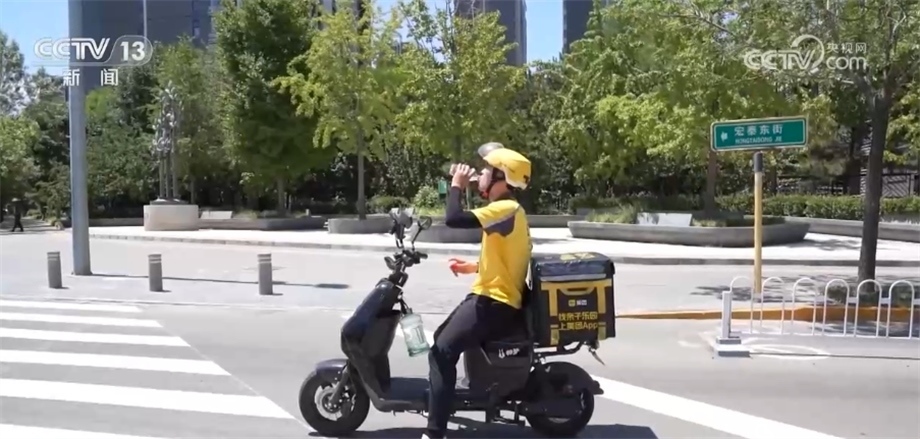 外賣(mài)騎手 白兆龍:從我的手機(jī)App上可以看到最近的防暑驛站,我這里還從驛站拿了十滴水、藿香正氣水,當(dāng)身體遇到不適的時(shí)候,藥品可以及時(shí)供上,我上個(gè)月還領(lǐng)了400多塊錢(qián)的高溫關(guān)懷金。