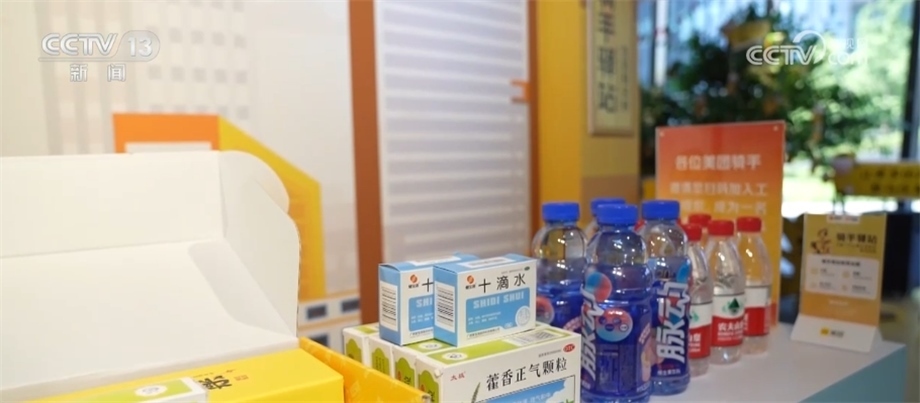 記者在北京市某防暑驛站看到,中午十二點(diǎn),外賣(mài)騎手正在送單的空閑間隙里休息。這里不僅備有解熱鎮(zhèn)痛類(lèi)、止瀉類(lèi)、防暑類(lèi)功能藥品,還有冷飲、西瓜等消暑餐食,像這樣的防暑驛站在全國(guó)有7000多個(gè)。