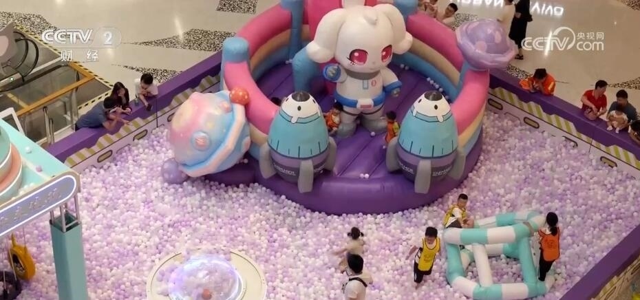 上海某商場運營經(jīng)理 趙佳麗:我們會在暑假檔的時候,在中庭引入一些比較熱門的IP(知識產(chǎn)權(quán))游玩設(shè)施。另外,因為三樓是兒童業(yè)態(tài),所以全年都會安排一些固定的互動點來供周邊的家庭游玩。