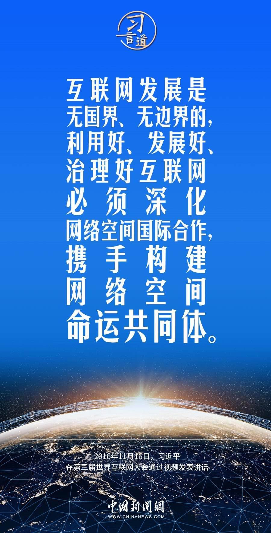 習(xí)近平總書記高度重視網(wǎng)絡(luò)空間國際合作,多次作出重要論述,強調(diào)要加快構(gòu)建網(wǎng)絡(luò)空間命運共同體。