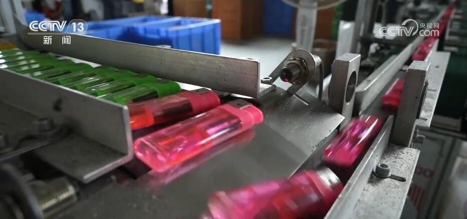 這家企業(yè)是第一批入駐產業(yè)園的企業(yè),目前日產打火機150萬只。記者發(fā)現(xiàn),這里的每道生產工序中都能看到自動化設備的身影。在質檢環(huán)節(jié),廠家正在用機器視覺技術給打火機“做體檢”,看火苗高度是否符合出廠要求。