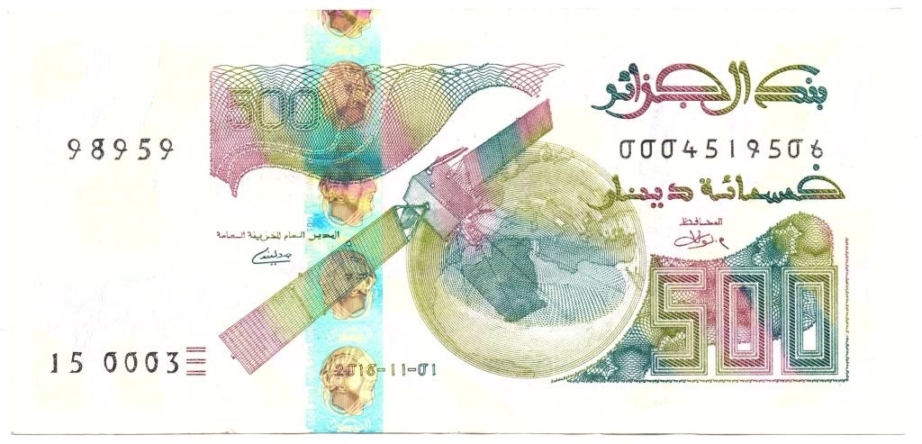 阿爾及利亞一號(hào)通信衛(wèi)星印在當(dāng)?shù)丶垘派稀?/span>