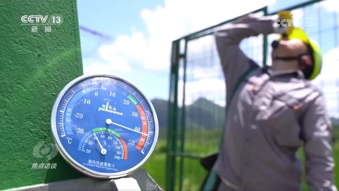 盡管有智能設(shè)備協(xié)助,但有些工作仍然只能靠人工來(lái)完成。拍攝當(dāng)天,氣溫超過(guò)38℃。工人們巡檢時(shí)發(fā)現(xiàn)一處電線桿塔的開(kāi)關(guān)過(guò)熱,如果不及時(shí)更換,可能會(huì)導(dǎo)致周邊近5000戶居民停電,必須馬上帶電作業(yè)。不過(guò)在穿戴絕緣裝備前,大家要先給衣服注水。