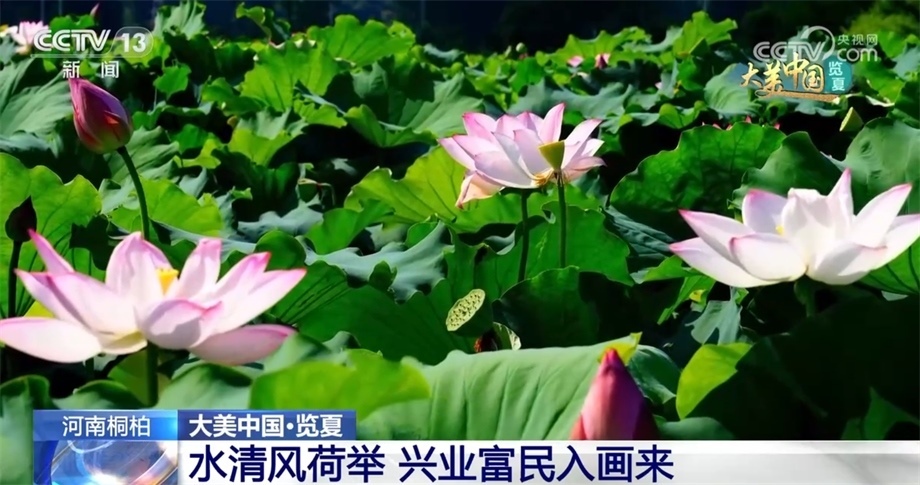盛夏時(shí)節(jié),河南桐柏縣的兩萬(wàn)余畝荷田迎來(lái)了一年中最美的季節(jié)。從空中俯瞰,藍(lán)天白云之下,青翠的稻田與荷田相映成趣,沿著彎曲的河流交錯(cuò)分布,青山依依、碧水潺潺、煙波浩渺、荷葉田田,美不勝收。一株株荷花裊娜地開(kāi)著,以粉紅色為主,或鵝黃或潔白,一幅絕美的鄉(xiāng)村生態(tài)畫卷徐徐展開(kāi)。據(jù)了解,目前桐柏荷花主要有藕蓮、花蓮等多個(gè)品種類群。當(dāng)?shù)卣e極探索農(nóng)旅融合發(fā)展模式,在開(kāi)展觀光旅游度假的同時(shí),蓮產(chǎn)業(yè)已成為群眾增收的新途徑。