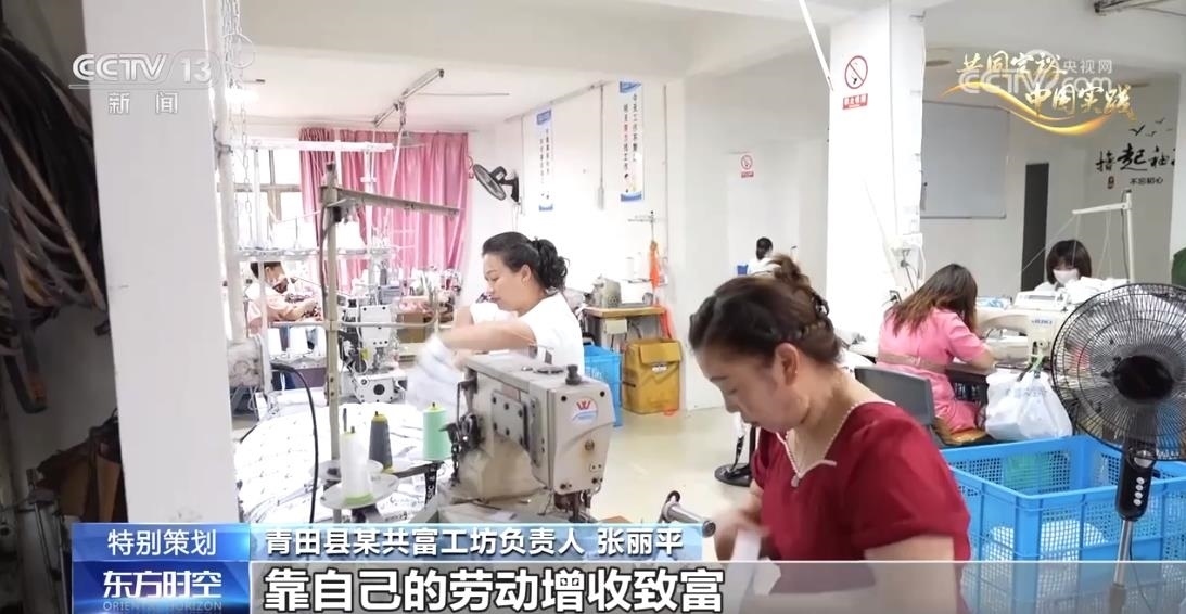 浙江青田縣某共富工坊負(fù)責(zé)人 張麗平:做服裝來料加工多年,就想把自己的技術(shù)帶回來,讓我們周邊的婦女靠自己的勞動(dòng)增收致富。